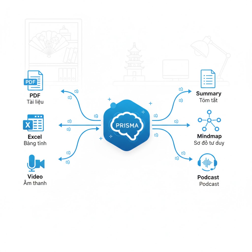 Với versatile data support, Prisma biến kho dữ liệu hỗn tạp của bạn thành tài sản thông minh, an toàn. Dù là tóm tắt video họp hay tạo podcast từ báo cáo, Prisma giúp doanh nghiệp Việt dẫn đầu trong kỷ nguyên AI.