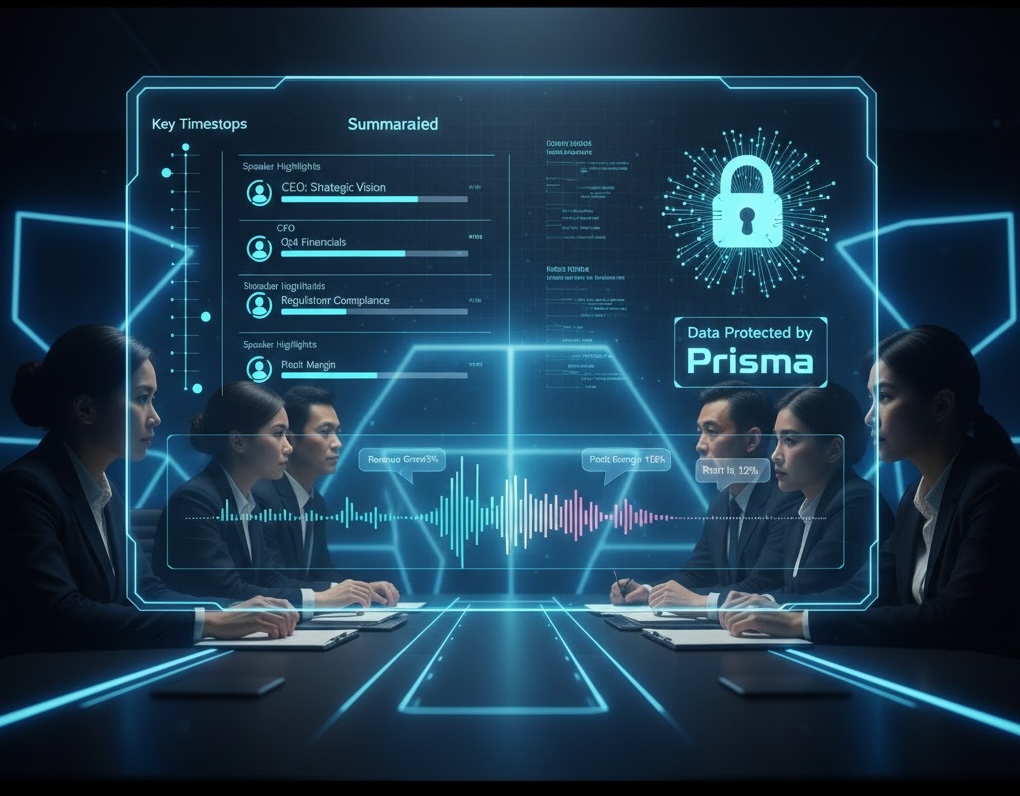 Ví dụ thực tế: Upload file audio cuộc họp ban lãnh đạo (ví dụ: thảo luận chiến lược 2026), Prisma tóm tắt các điểm chính, trích dẫn thời gian cụ thể (e.g., "Tại phút 15:30, CEO đề cập tăng trưởng 20%"), và thậm chí tạo podcast ngắn gọn để chia sẻ nội bộ.